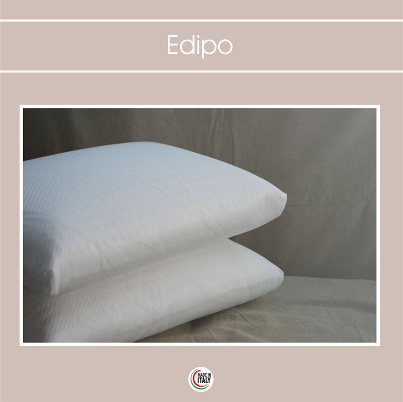 Edipo è un guanciale sfoderabile in schiuma di Puro Lattice composto da una federa esterna con trattamento in Aloe Vera e zip; una federa interna in puro cotone bianco cucita che protegge e contiene la sagoma con profilo standard “a saponetta” di alta densità.